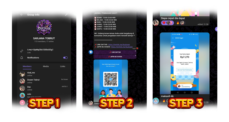 1. Wajib bergabung di komunitas telegram SARJANA TOBRUT [LINK KOMUNITAS : KLIK DISINI!]